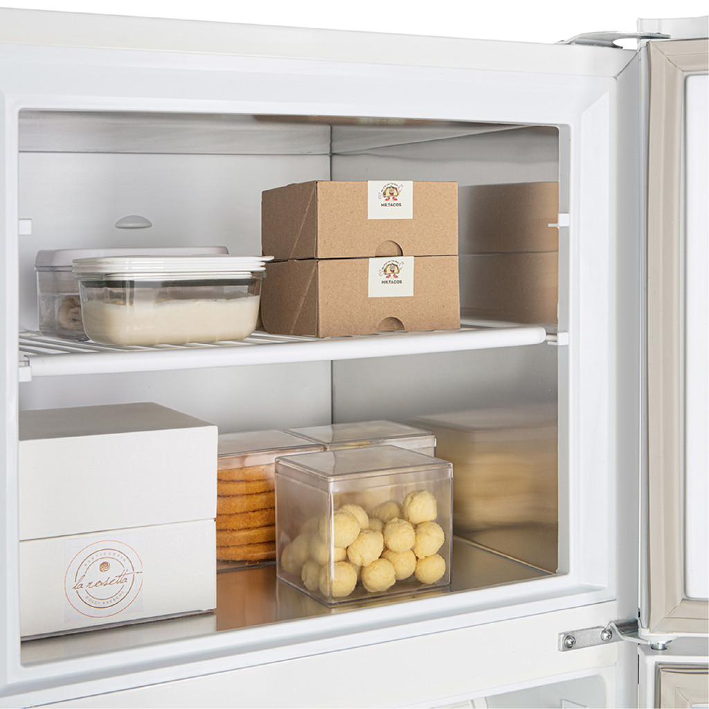 Cuenta con anaqueles en la contrapuerta del refrigerador, para una mejor organización.